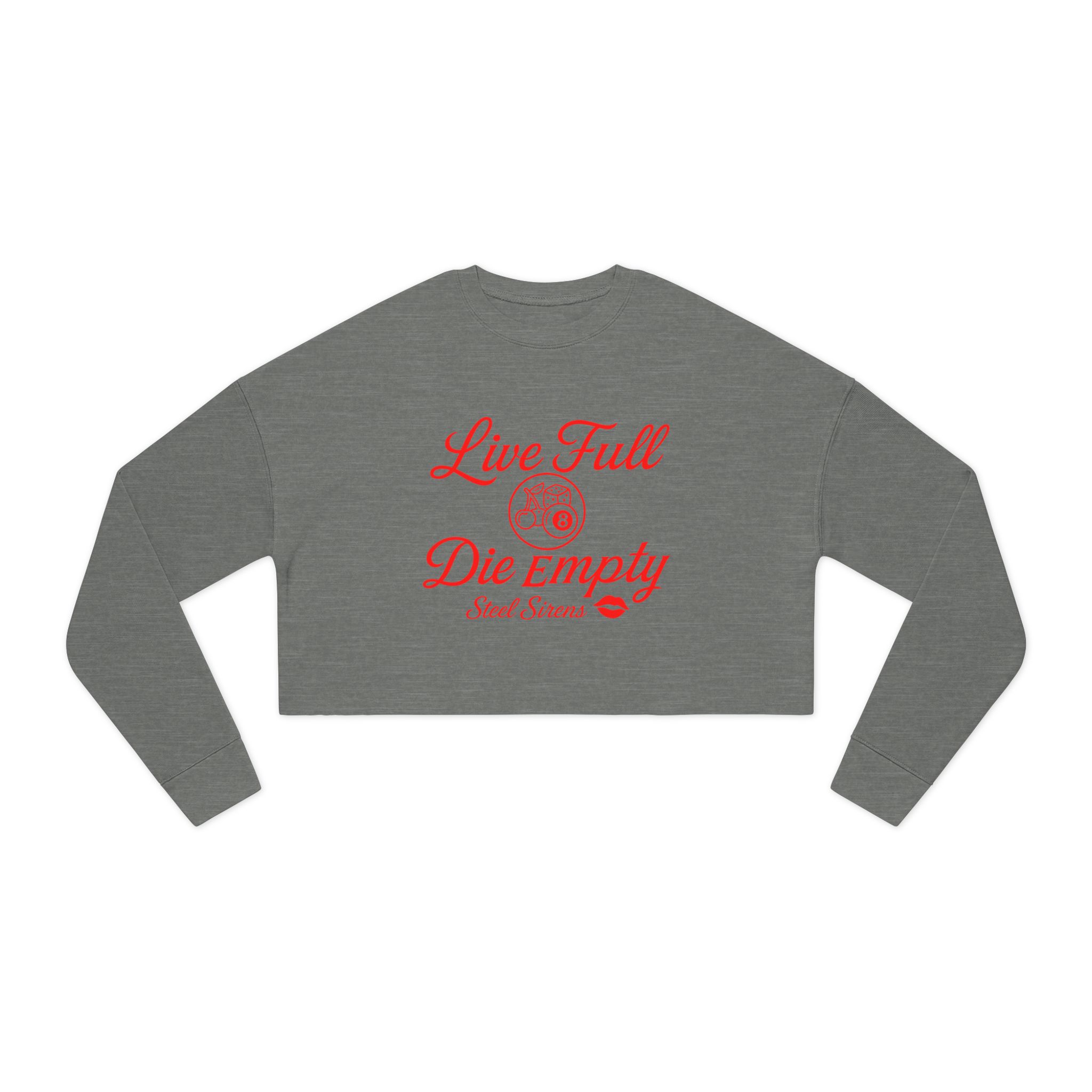 Cropped Sweatshirt — ‘Live Full, Die Empty’ Graphic with Red Lip Print