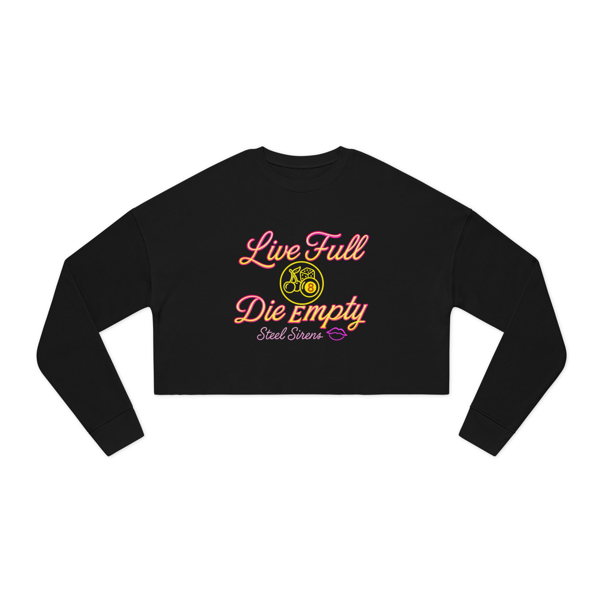 Cropped Sweatshirt — 'Live Full, Die Empty' Neon Retro GraphicCropped Sweatshirt — ‘Live Full, Die Empty’ Neon Retro Graphic