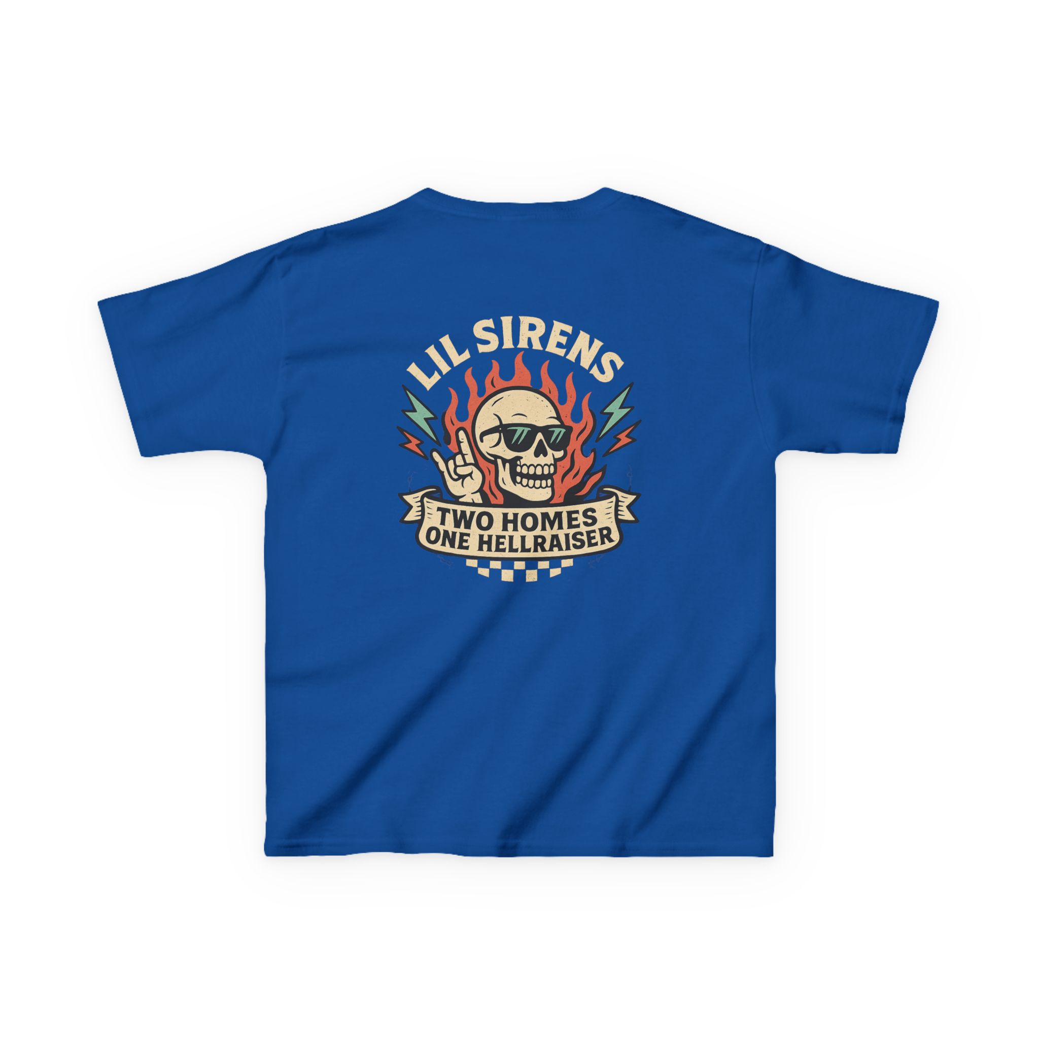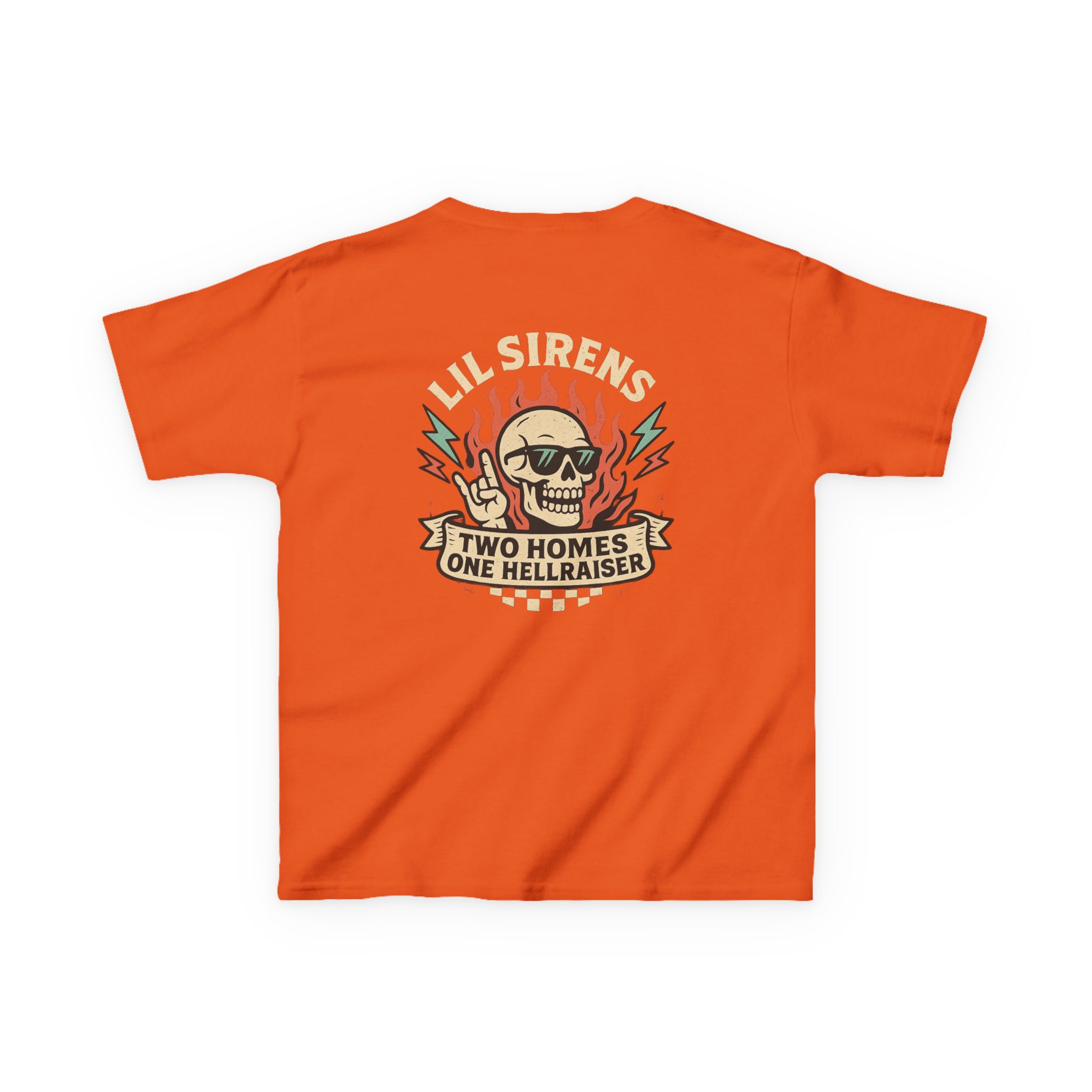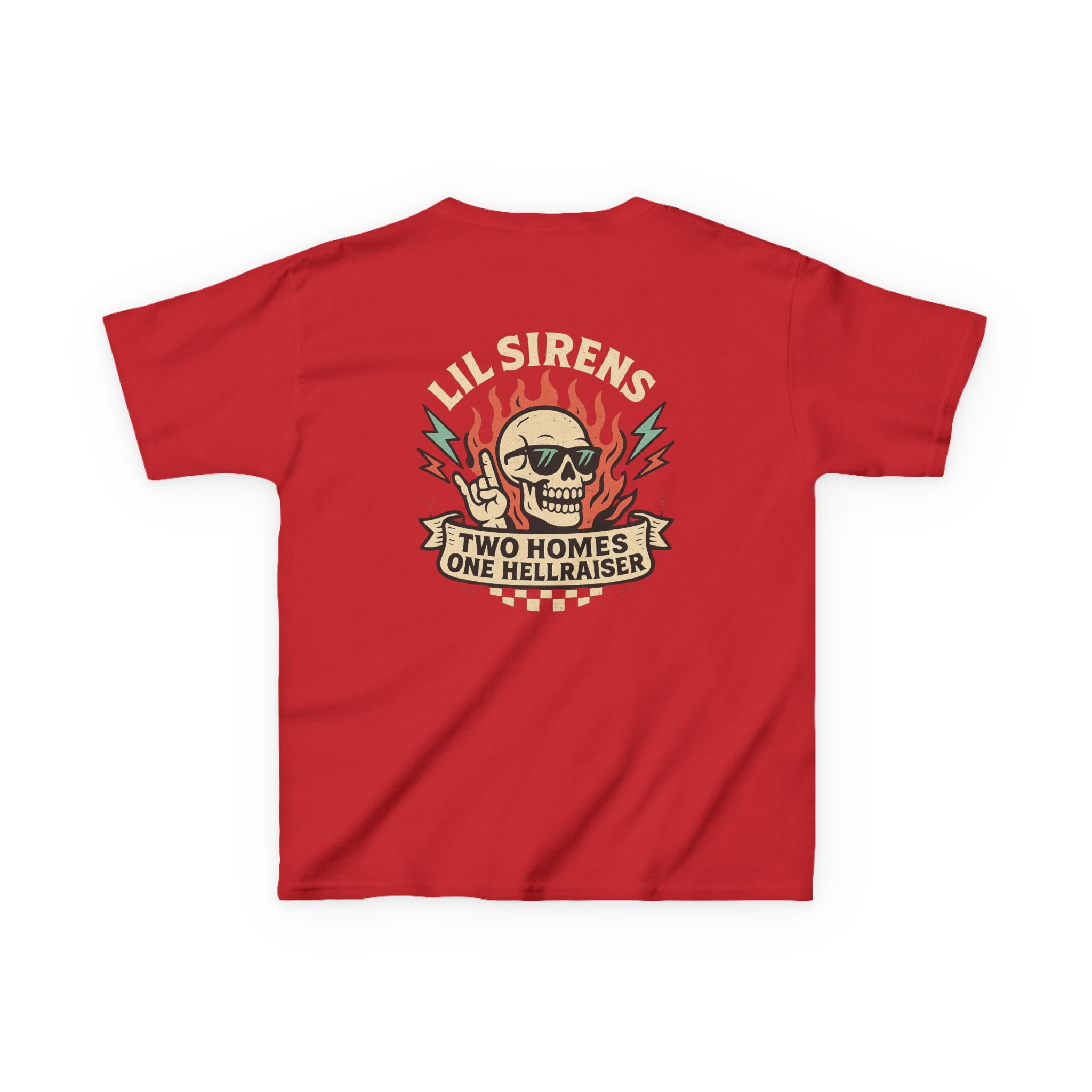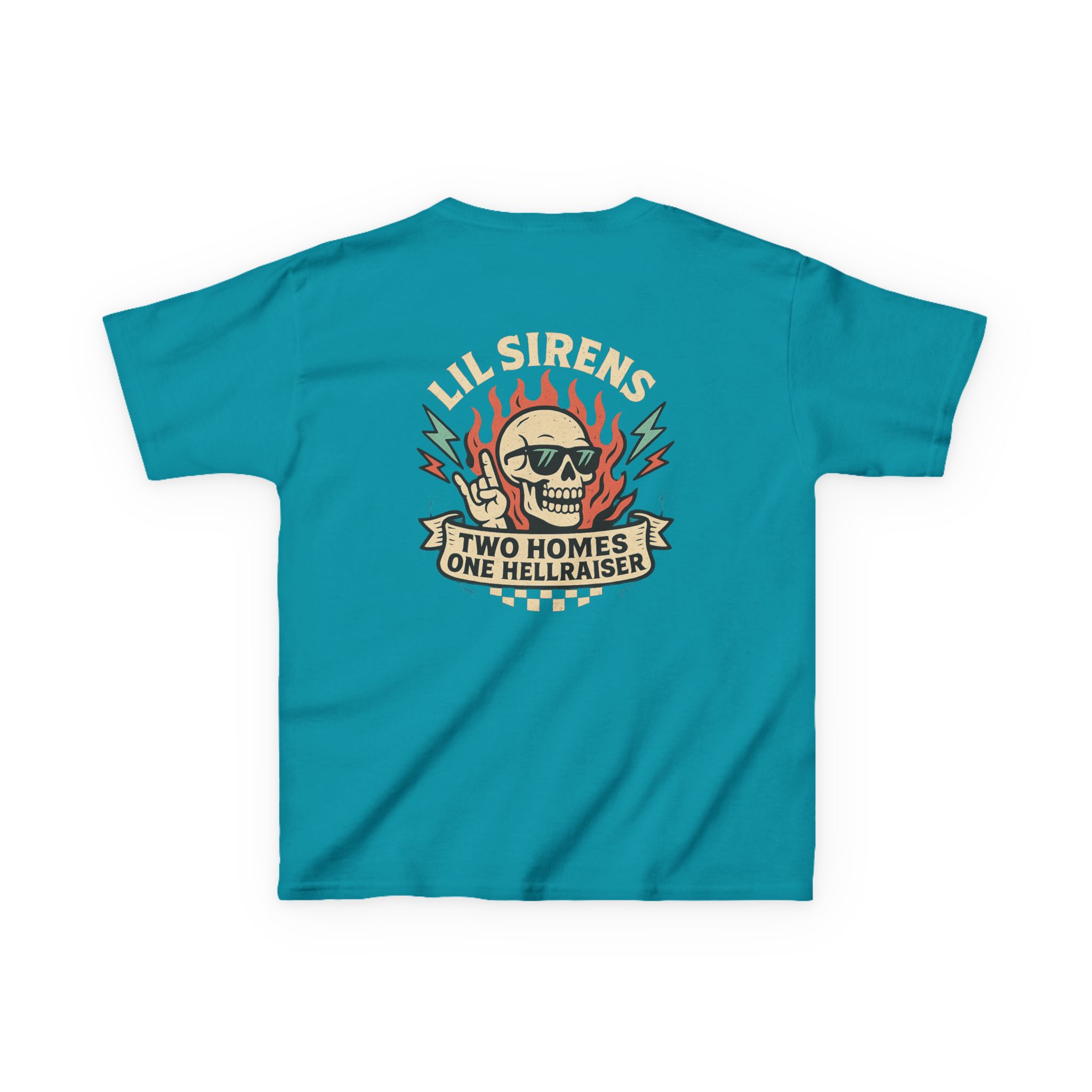 For the tiny rebels with big stories. The Lil Sirens “Two Homes One Hellraiser” Tee is made for the kiddos who ride the line, break the mold, and love twice as hard. The kiddos who roll between homes but never lose their fire. Whether they’re splitting time between homes or just living loud, this tee lets ‘em wear their truth with pride. Featuring a badass skull with flames and lightning bolts, it’s bold, empowering, and full of energy, just like them.