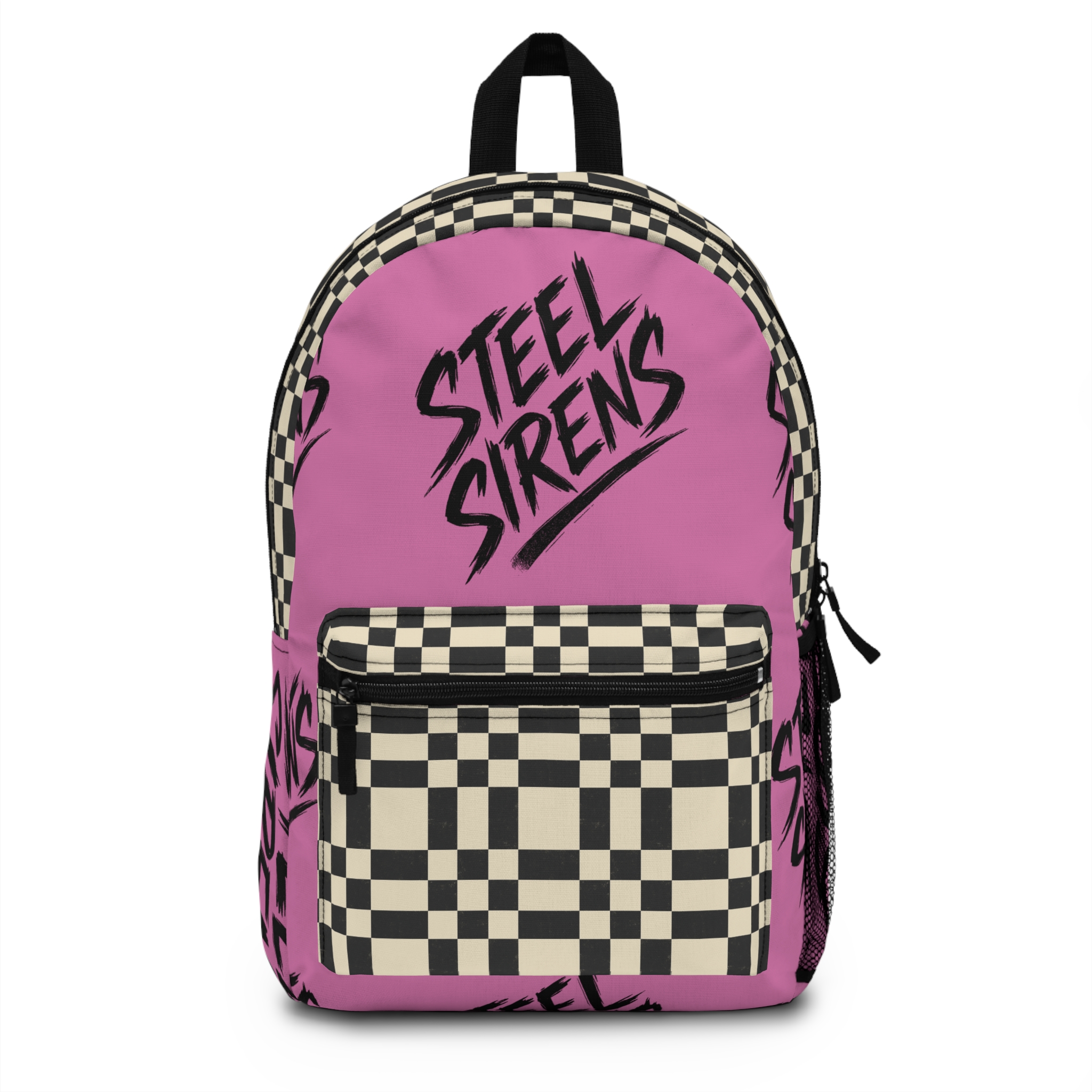 Stand out, gear up, and raise hell with the Steel Sirens Checkered Blaze Backpack. This pink-and-checkered riot isn’t here to blend in—it’s here to be seen. Splashed with our signature graffiti-style logo and trimmed with that bold black-and-cream checker, it’s a full-throttle flex from every angle.