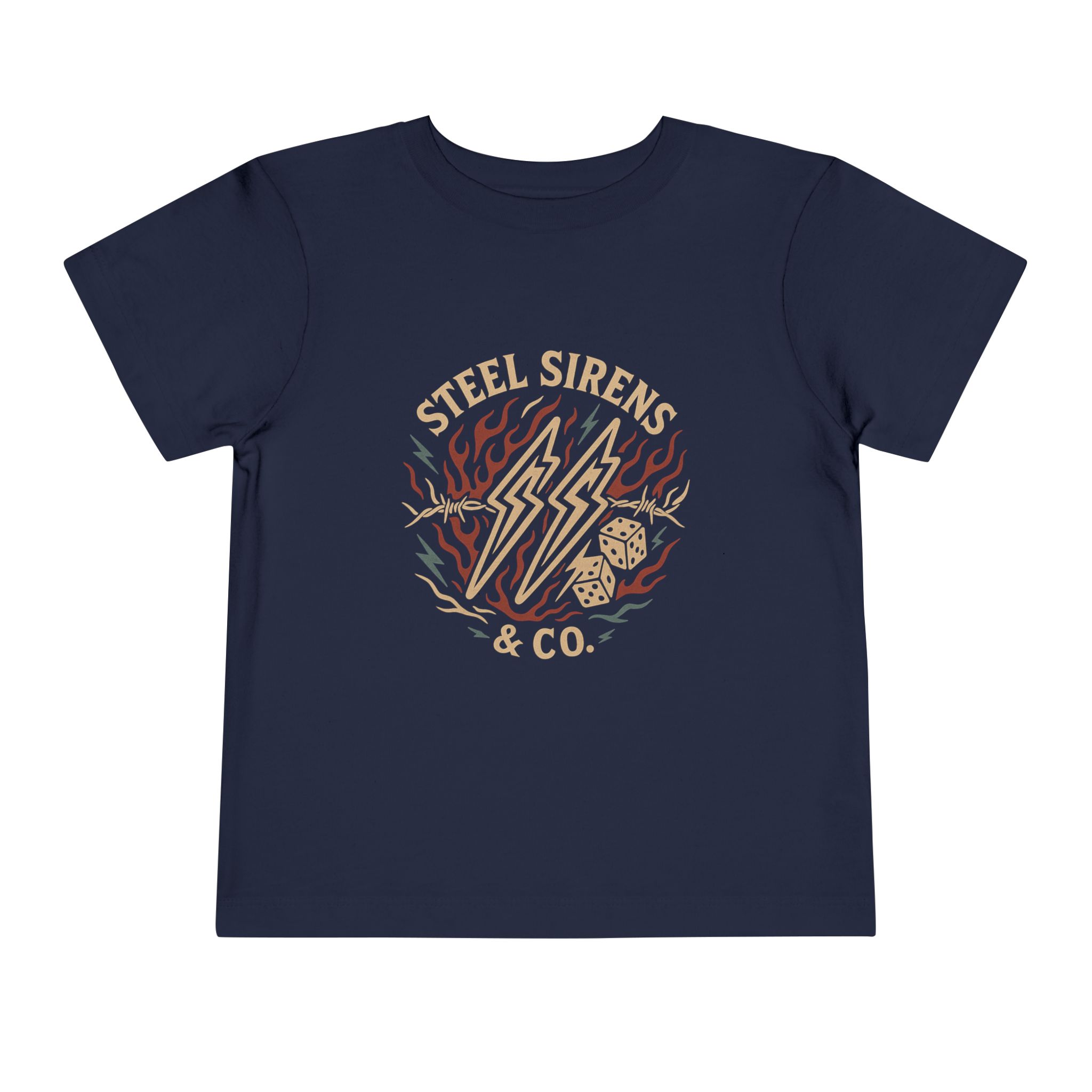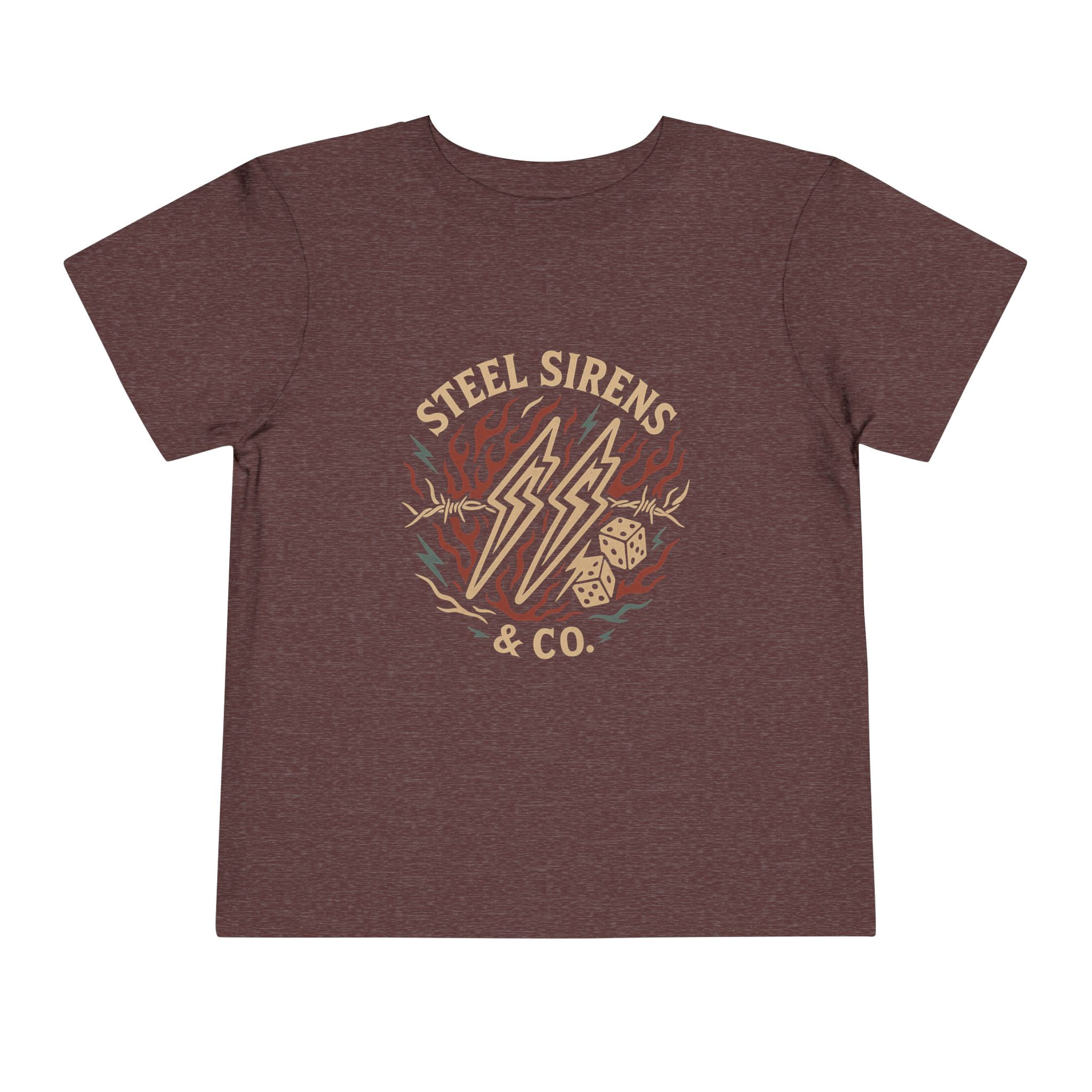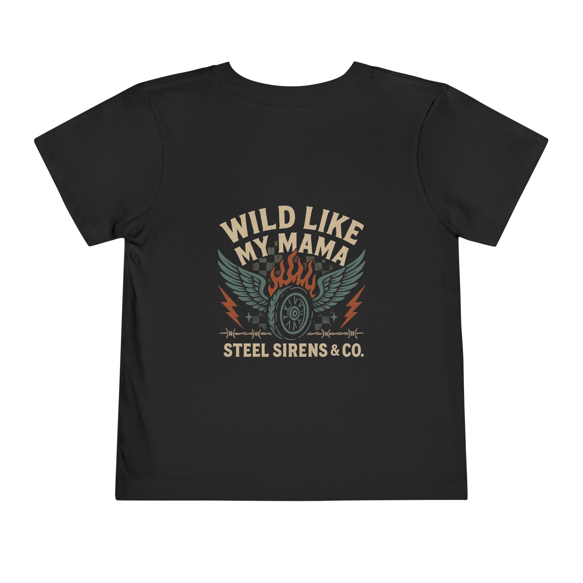 Let your little wild one match your bold spirit with our “Wild Like My Mama” toddler tee from Steel Sirens & Co. Designed for the mini rebel in the making, this shirt features a fiery motorcycle-inspired graphic on the back and a badass lightning-and-dice design on the front, repping the next generation of fearless kiddos.