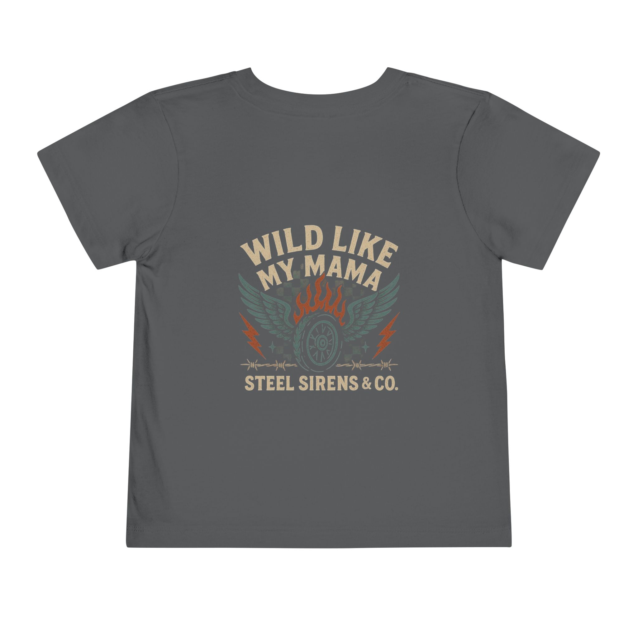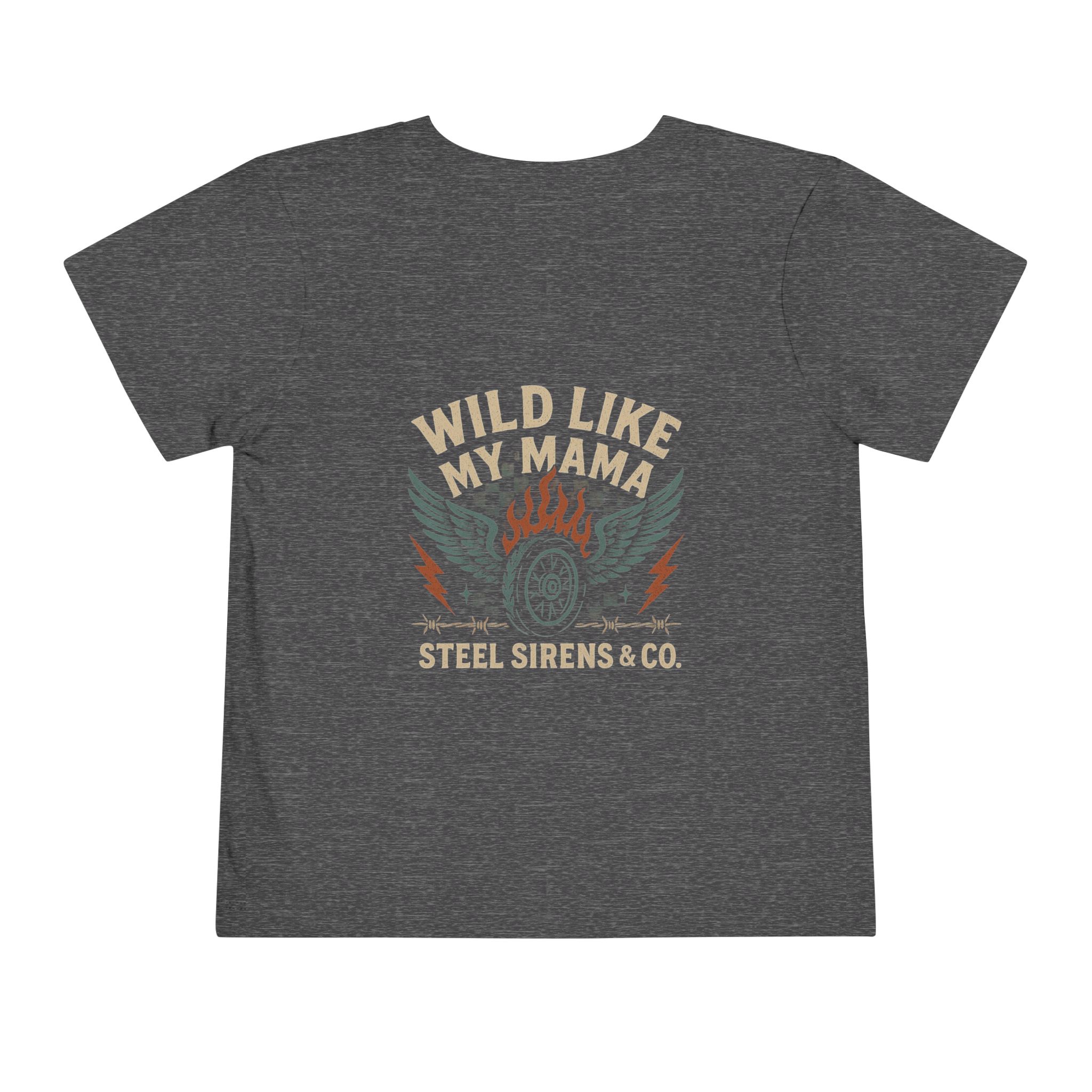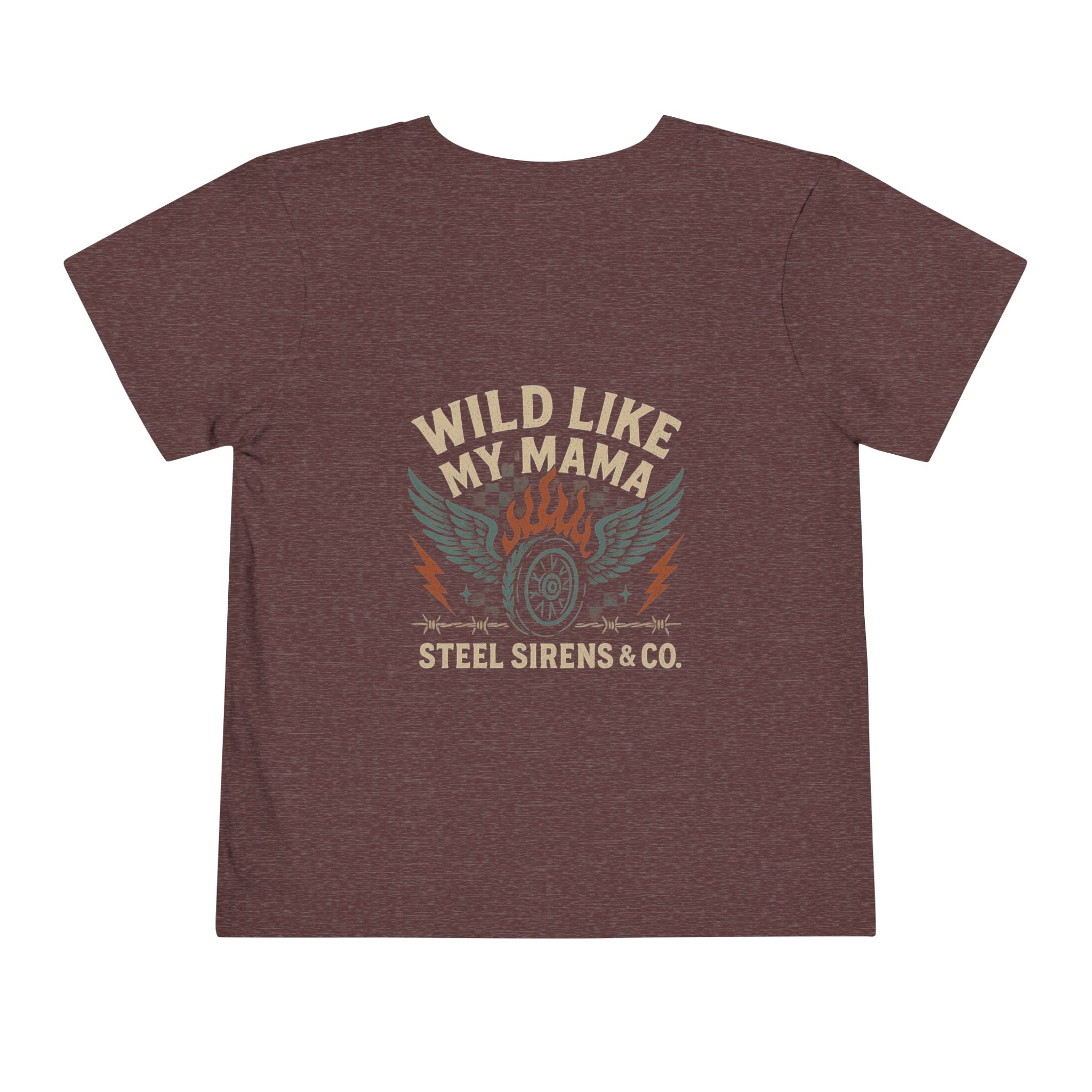 Start ’em young with rebel style. The Wild Like My Mama toddler tee brings the same badass Steel Sirens & Co. spirit to your little one. Featuring bold flames, wings, and moto-inspired graphics, this tee is perfect for pint-sized riders-in-training.